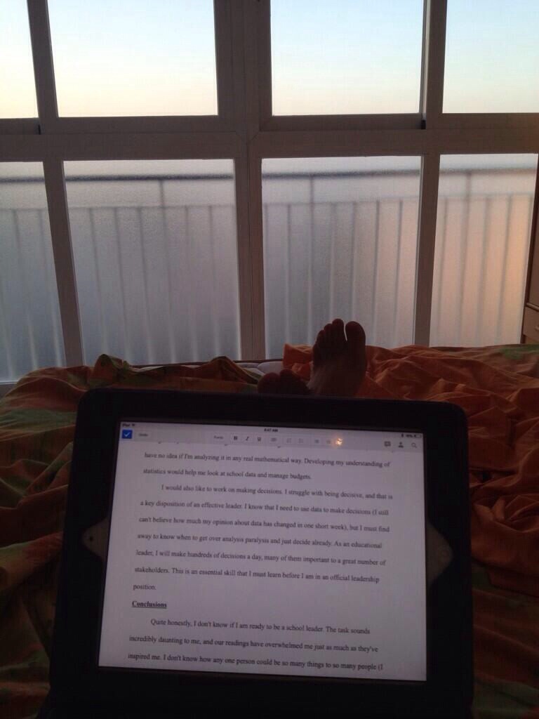 Monday is pretty much a blur; I had class (my preso went well, thanks for asking), I went to lunch with some friends from school (Cyranos for empanadas again) and then came home to work on my paper. The only issue was that I was exhausted, so I ended up napping first. I finally started working on the paper at 9 or so, and I pulled an all-nighter to get it done. This really is turning into the true college experience! The paper was really challenging, but in the end, I enjoyed writing it and was proud of my work. Here are some photos from the process: