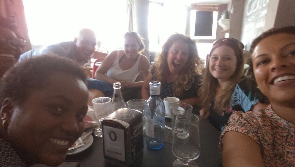 To celebrate, I met up with Ligia at the beach (our Friday routine!). This time there were a bunch of us, and we spent a little time at Charlotte (one of our favorite cafes) beforehand. We then went swimming in the sea and took a bunch of goofy pictures with Ligia’s underwater camera. (Side note to myself for next year: Get one of those cameras! I was going to get one after Ecuador last year, but I forgot all about that!) As usual, it was a beautiful, relaxing Friday afternoon. Here are some of our photos (thanks to Ligia for WhatsApping them to me! Is “WhatsApping” a verb?!?!).