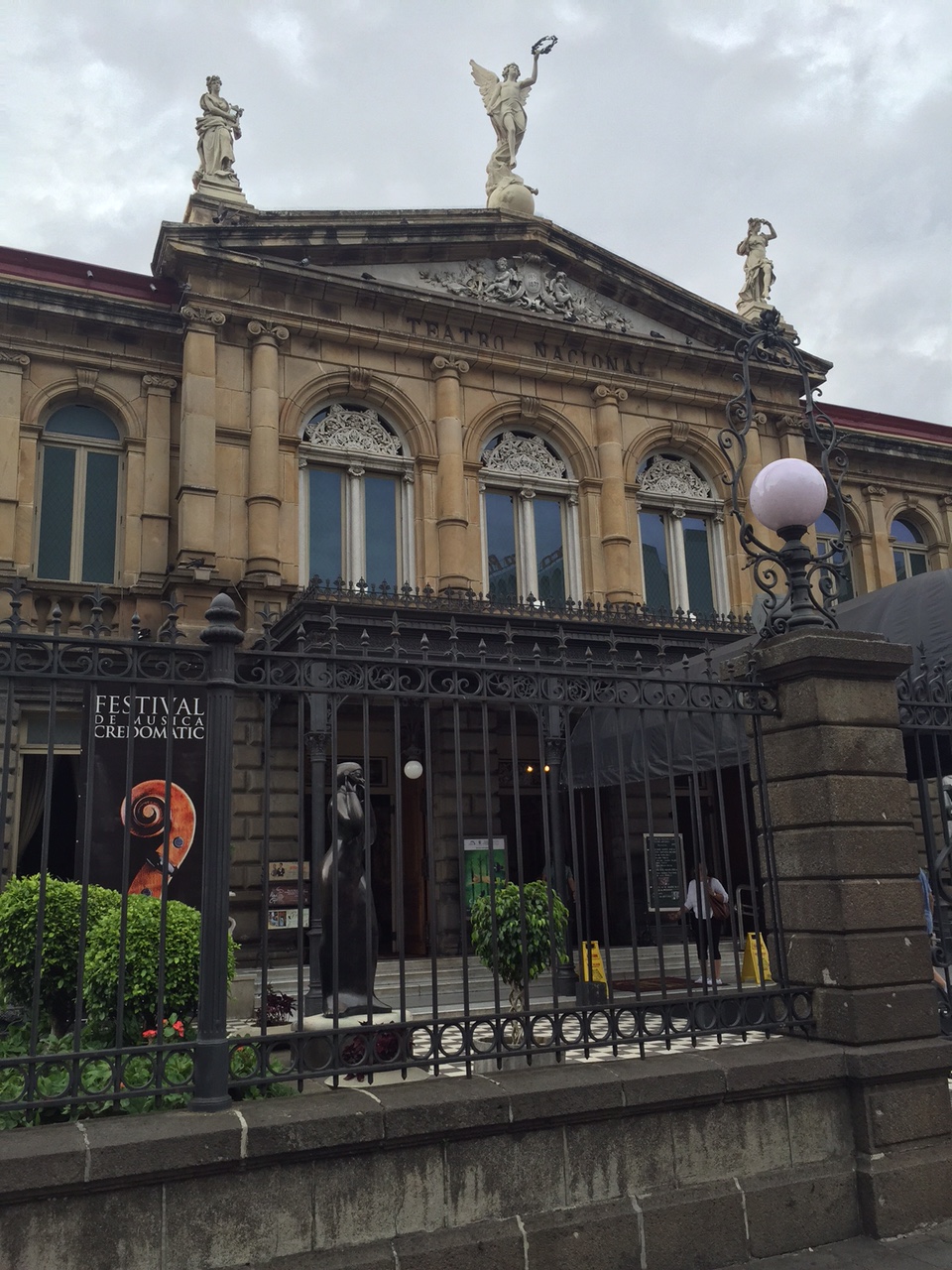 Oh! I almost forgot! Before girls’ night, I headed into the San José City Central with Rebecca. I have been here almost a month, and I still hadn’t found my way downtown, so I was determined to do so! We found the National Theater (Teatro Nacional), a great park (Parque Central), and just a cool atmosphere in general. It was REALLY busy because it was Mother’s Day (LOL thanks for the text, LBJ), so sometimes it was hard to navigate the streets. We took a cab from the compound (which we have now started to call Gringolandia), and I was excited because I talked to the cab driver en español the whole time. His name was José, and he used to be a policeman. He showed us old pictures of himself in his uniform. He was very friendly.